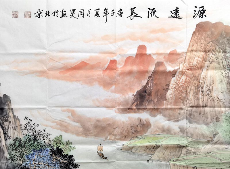 周昊zh 八尺山水 【源远流长】 保真字画作品