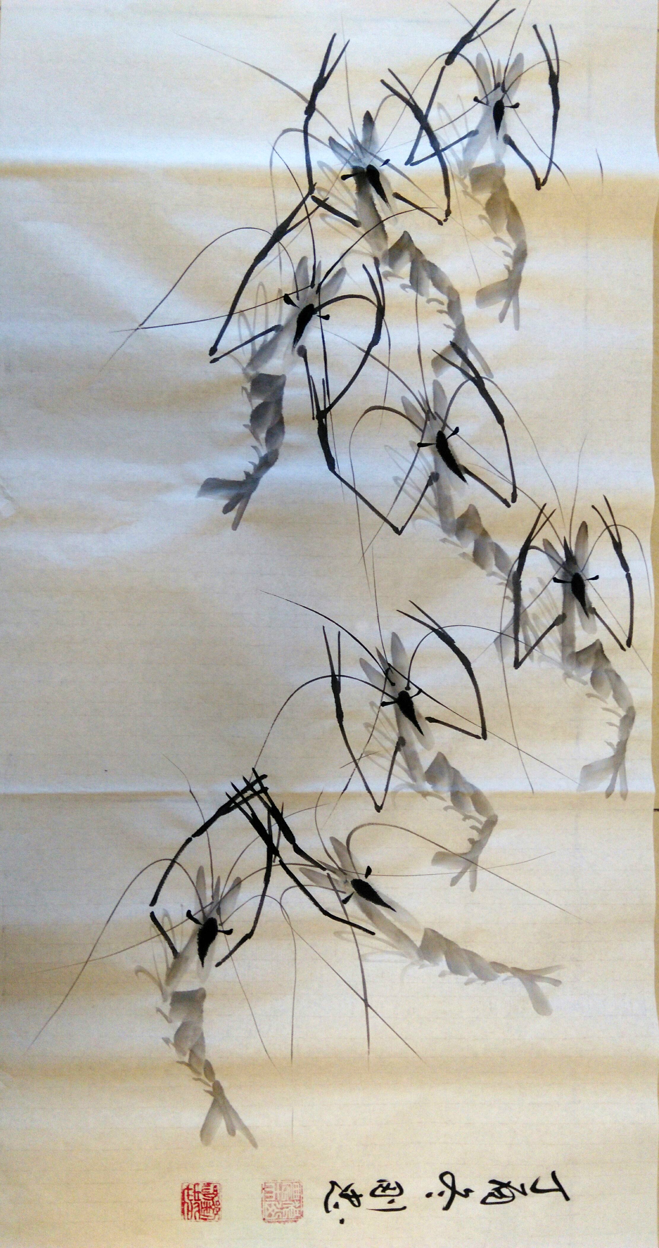 著名画家刘刚忠先生齐白石水墨画虾技法 |