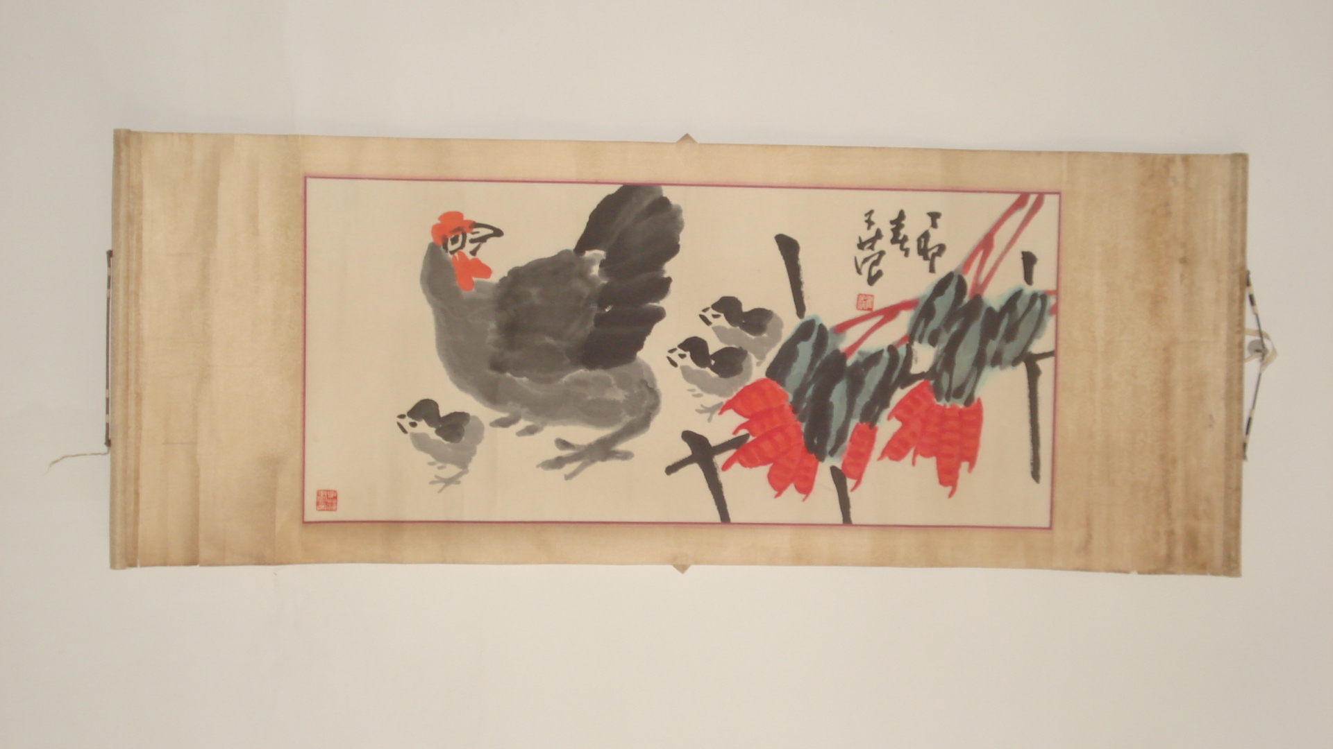 崔子范,山东省莱阳县人(今莱西市境内),1915年生,读过私塾和中小学,毕业于延安军政学院和延安高级党校。历任山东胶东东区南海专员公署专员、北京医院政委、国务院城市建设部勘察测量局局长、北京中国画院(今北京画院)副院长等职。现为中国美术家协会会员、北京中国花鸟画研究会会长。 尺寸:80厘米x36.5厘米. 厘米. 0年代的老裱.有意的联系.电话13718331060