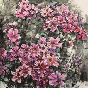 (1943.11—) 福建莆田人。,早年得岭南派名家宋省予、陈子奋的悉心教诲,并勤心研习撞粉、撞水的岭南花鸟画风,临摹学习虚谷、郑板桥、任伯年、吴昌硕及齐白石的绘画技巧,66年“文革”开始,就拜著名版画家修军学习版画艺术,创作出许多国内外具有影响力的优秀作品作为。1987年调到长沙市文联,开始有了从事自己多年来探求、创新花鸟画的实践。对于一个真正的艺术家来说,时代的变迁和生活的跌宕起伏并不会给其带来愤懑和消沉,他们用其固有的执着和探索、捕捉和创造来体现心灵的颤动和时代的气息。柯桐枝的画正如他人一样乐观、开朗、活跃,充满灵动之气。花鸟画的创作方面,从“以墨为主”“留白抒意”的传统国画观念中跳出来,增添版画刀刻手法与油画的缤纷色彩相结合,使“骨法用笔”与丰富的色彩发挥无限的艺术意境的想象空间,以色压色、以色衬色,使作品集热烈、隆重和高雅、明快一体的几乎唯美的艺术效果,以体现物我互融、互解、互爱、互扬的花鸟自然观。他坚持以理会形,以意取神,以我法变古法,变古意为今情,用大块的墨、靓丽的色彩、繁密紧凑的构图、刀凿般弹性有力的线条、速写般潇洒随意的走笔落款,有机构成了画面的冲力动感,给作品赋予了勃勃生机,呈现出鲜明的艺术特色和时代意识。这是一种满怀激情的自然观,全然不是传统的清淡和虚隐,一改传统文人的文弱和孤傲,充满激情地走入绚丽缤纷的现实生活。更加体现大自然的缤纷色彩和富丽庄重。才能使中国的传统花鸟画有足够的力量和宏大的气魄走入绚丽缤纷现实生活之中,在同样绚丽缤纷的当代艺术之林中占有一席之地。柯桐枝的花鸟画重视传统观念和表现手法的创新,主张花鸟画家要画心中之花、意中之鸟,求艺术精神之美,用自己明净、宽阔的内心世界去感悟和亲近自然。