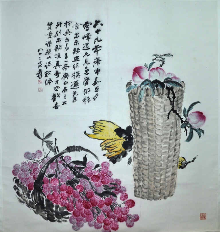 质地形式 设色纸本 立轴 钤印 张爰之印 大千居士 邓雪峰印 署年 庚申(1980年) 款识 六十九年庚申嘉平月,雪峰道兄见过摩耶精舍,出示新作,结构运笔于吴缶翁王一亭齐白石外别出新境,真奇才也。欢喜赞叹谨题以誌钦佩。八十三叟爰。 作者 张大千 邓雪峰 尺寸 119×108cm 报价:120万