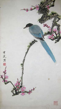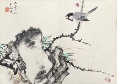 田世光 1916-1999,号公炜,北京人。早年拜张大千门下,为大风堂弟子之一。1933年入京华美术学院国画系,1937年毕业,继入北平古物陈列所国画研究馆,历任研究员、助教、讲师,并兼课于京华美院、北平艺术专科学校 。抗战胜利后,被聘为北平艺专讲师。1949年后,历任中央美术学院讲师,中央工艺美术学院讲师、副教授,中央美院副教授、教授,中国画研究院院委委员。新国画研究会创办人之一。中国美术家协会会员,北京中国画会理事,北京工笔重彩画会副会长,北京花鸟画会副会长。擅长花鸟画 。作品有《英姿万古》(藏于中国美术馆)、《春晖》、《山雀》等 。曾举办个人画展多次。