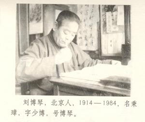 刘博琴(1921—1984),号竹翁。北京大兴县丰台人。所居日鸿爪留痕馆。 其先祖刘铨福为金石名家,与赵之谦相友善,庋藏颇富。博琴以家庭熏染,幼年即嗜书法篆刻及金石文字之学,曾追随叔父士彦问学多年,後家道中落,遂以书法篆刻二艺营生。